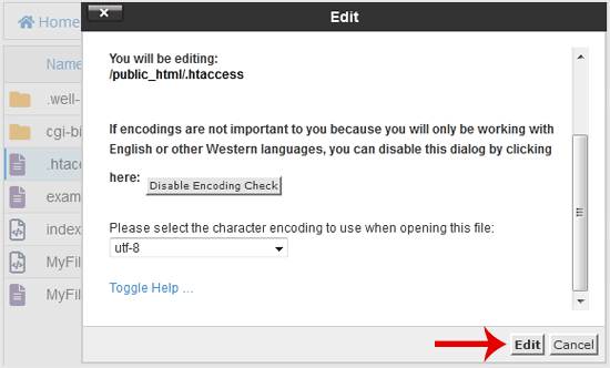 5. Right-click on the dot htaccess file and then Edit in the Context Menu.